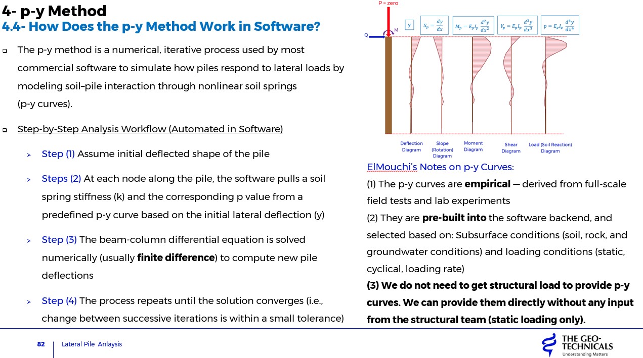 This slide below is one of many from my upcoming Lateral Pile Analysis Course, where I explain this process step-by-step and discuss how to interpret each output correctly.
